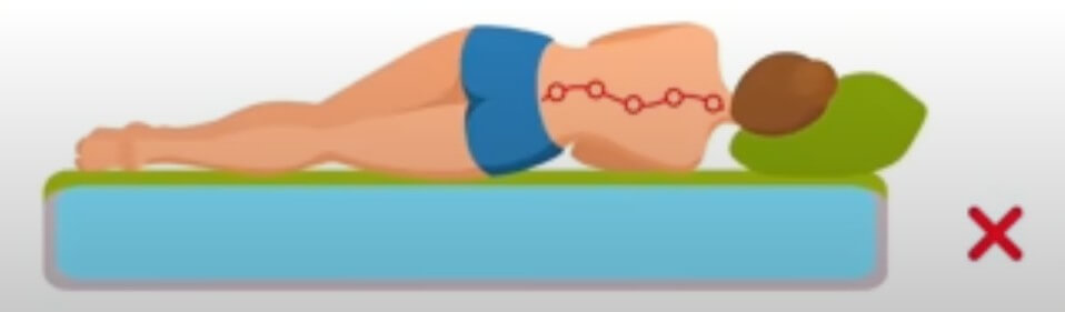 침대는 적당히 쿠션감이 있는 매트리스가 좋습니다. 너무 딱딱한 바닥의 경우 바닥과 몸의 빈 공간을 채워주지 못해 허리 근육이 긴장한 채로 잠에 들게 됩니다. 또 반면에 너무 물렁한 매트리스를 사용한다면 요추전만을 유지할 수 없어 허리통증을 악화시키게 되는 것입니다.